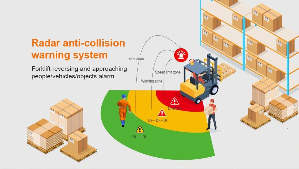 Forklift Reverse Proximity Alarm is a radar-based safety system designed to reduce collision risks during forklift reversing.